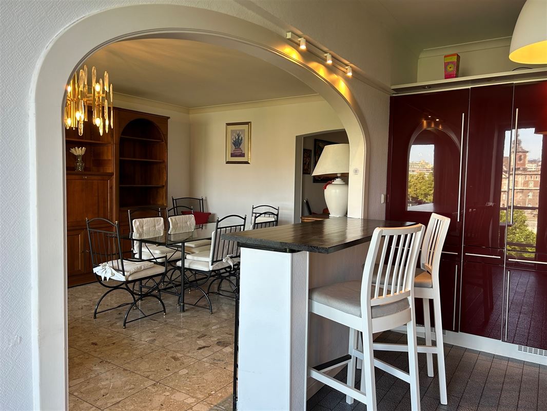 Situé au coeur du centre-ville, profitant d'une superbe vue sur la Meuse, ce bel appartement se trouve au 5ème étage d'une résidence parfaitement tenue. Il propose sur environ 85m² : un grand hall d'entrée, une toilette indépendante, un vestiaire, un spacieux séjour avec vue sur Meuse, une cuisine ouverte entièrement équipée, une grande chambre avec terrasse à l'arrière, un vaste dressing et une salle de bains. L'appartement bénéficie également d'une cave au sous-sol. Parking gratuit au pied de l'immeuble. Grâce à sa situation idéale et ses beaux volumes, cet appartement est idéal pour un couple ou une personne seule en quête de tranquillité. Le bien bénéficie de tous les aménagements nécessaires à une occupation agréable et peut être loué meublé (cuisine équipée, nombreux rangements,...). Loyer : 750€/mois + Charges : 200€/mois (provision pour communs, eau et chauffage). Disponible de suite. Pour ne pas passer à côté de cette opportunité, contactez-nous au 04/223.23.88.Général