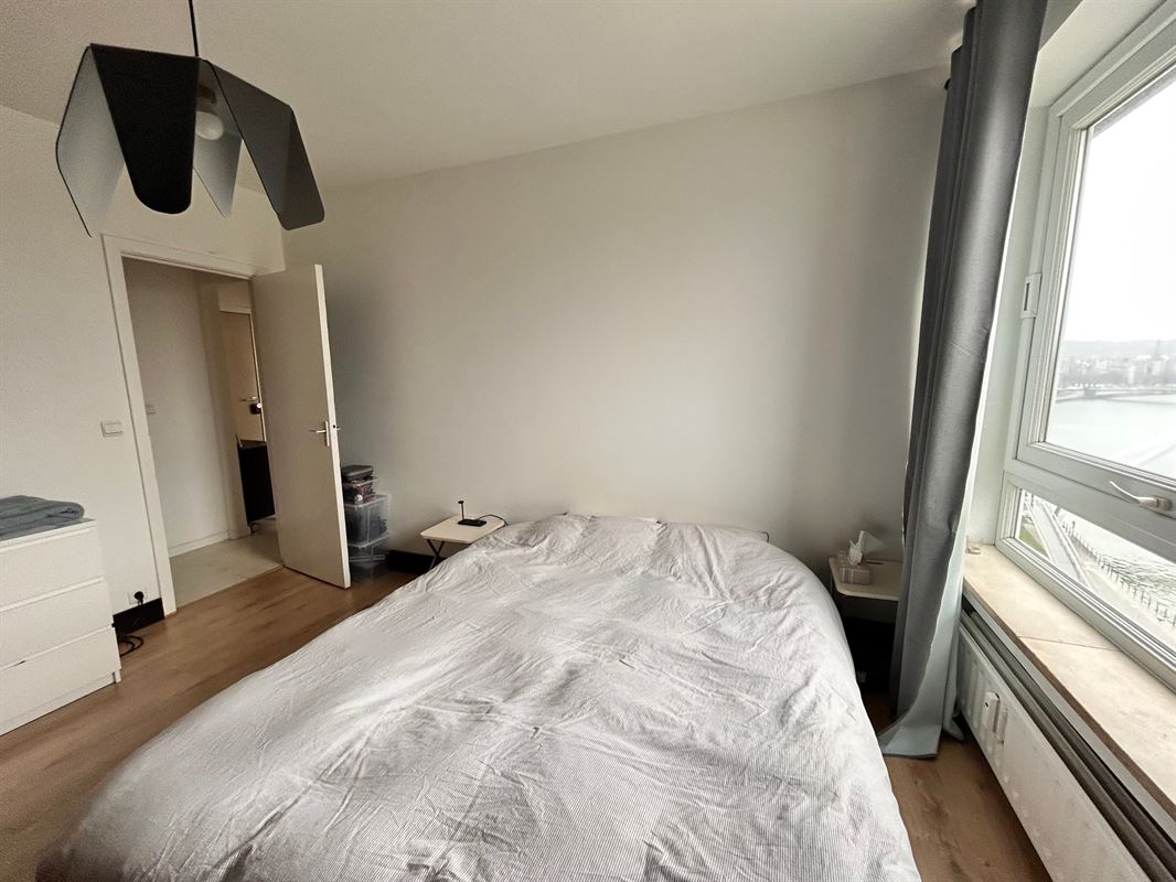 Situé sur l'agréable et très prisé Quai de Rome, à proximité directe de la belle Liégeoise et de l'accès au Parc de la Boverie, ce superbe appartement avec vue sur Meuse se trouve au 10ème étage de la résidence AUTEUIL. A deux pas de la gare des Guillemins et à quelques arrêts de tram du centre-ville, ce bel appartement dispose d'une vue époustouflante. Il propose sur environ 60m² : un hall d'entrée avec rangement, un séjour lumineux donnant sur la Meuse, un cuisine entièrement équipée, une grande chambre et une salle de bains avec emplacement machine. Le bien bénéficie également d'une cave privative au sous-sol et d'un box de garage au rez-de-chaussée. Grâce à sa situation idéale, à son état impeccable et ne nécessitant aucun gros travaux (châssis récents, électricité conforme, cuisine contemporaines,...), cet appartement gorgé de lumière est idéal pour un premier achat de qualité ou un investissement intéressant. Le bien bénéficie de tous les aménagements nécessaires à une occupation agréable. Copropriété bien tenue et sans gros travaux prévus. L'appartement et le garage sont actuellement loués. Prix : 210.000€ garage compris. Pour ne pas passer à côté cette belle opportunité, ne trainez pas à nous contacter au 04/223.23.88.Général
