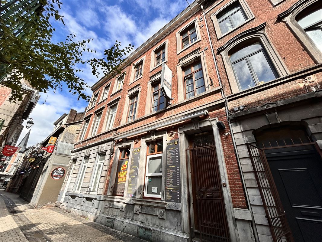 Situé en plein coeur du centre-ville, dans un quartier incontournable pour tous les Liégeois, cet immeuble est exploité depuis de nombreuses années par un établissement HORECA au rez-de-chaussée et des appartements aux étages. Il propose sur environ 360m² habitables : Au rez-de-chaussée, un espace commercial d'environ 100m² avec toilettes et cour extérieure. Au sous-sol, environ 55m² de caves et de locaux techniques. Au premier étage, on retrouve un entresol à usage de studio avec cuisine et douche et un appartement 1 chambre d'environ 55m comprenant un séjour avec cuisine ouverte, 1 chambre et une salle de douches. Le second étage comprend deux studios avec chacun un coin cuisine et une salle de douche. Le troisième et dernier étage est composé de 3 greniers aménageable. Nécessitant d'être rafraichi fortement ce bâtiment pourrait, en dehors de sa disposition actuelle, être réorganisé pour proposer un co-living de qualité, des appartements ou du AirBNB. Avec sa situation idéale, proche des écoles et des commerces, ce bien est idéal pour un investisseur aguerri en quête de rendement. Prix : Faire offre à partir de 420.000€ Pour plus d'informations, n'hésitez pas à nous contacter au 04/223.23.88.Général